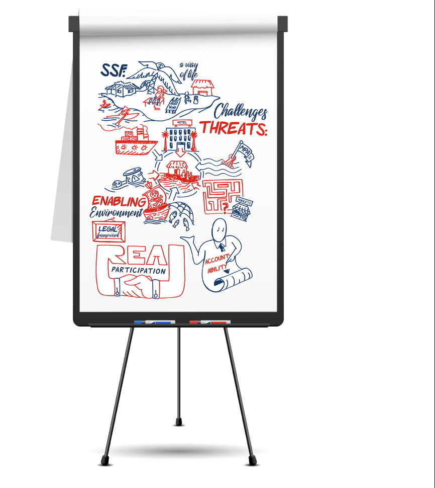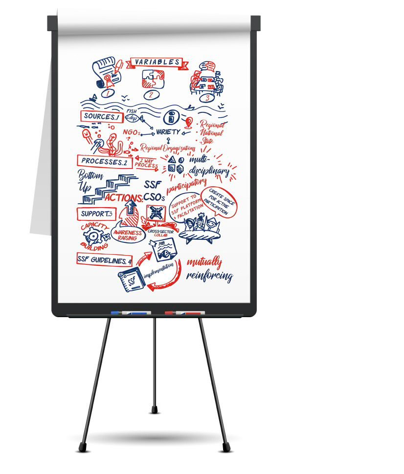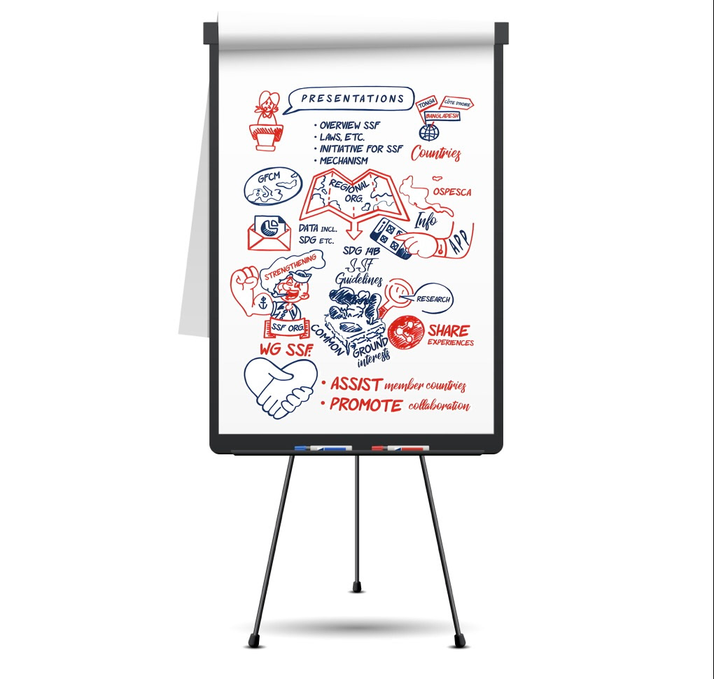 La visual facilitation è un supporto che può essere effettuato anche da remoto (come in questo caso) ed esemplifica i concetti del meeting tramite efficaci metafore visive. Cliente: FAO, Summit 2018.